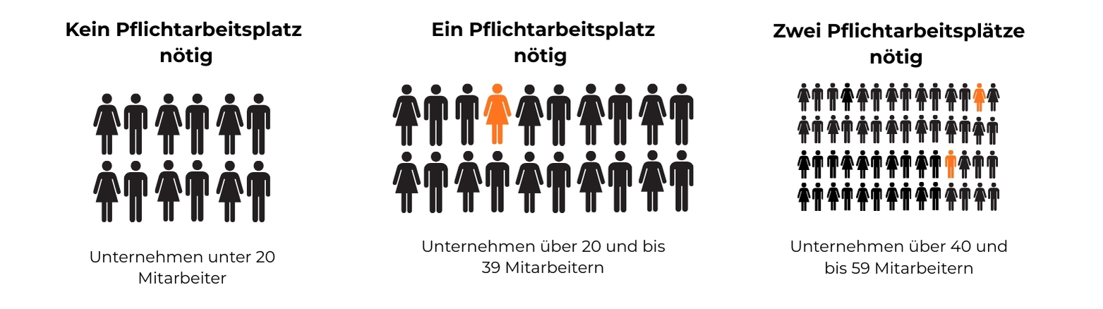 Angenommen, dein Unternehmen beschäftigt 100 Mitarbeitende. Damit bist du gesetzlich verpflichtet, mindestens 5 Menschen mit einer Schwerbehinderung einzustellen.