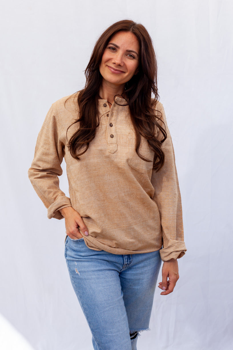 Handgewebte Baumwolle ist atmungsaktiv und angenehm zu tragen, insbesondere bei warmem Wetter. Yasha fühlt sich leicht und luftig an und verhindert, dass man ins Schwitzen gerät.
