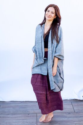 Die Kleidung ist handgewebt und pflanzengefärbt. Das macht den besonderen Look und das einzigartige Tragegefühl aus.