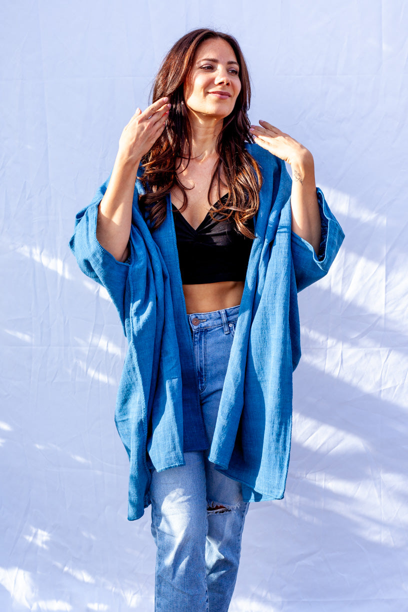 Die Kleidung ist handgewebt und pflanzengefärbt. Das macht den besonderen Look und das einzigartige Tragegefühl aus.
