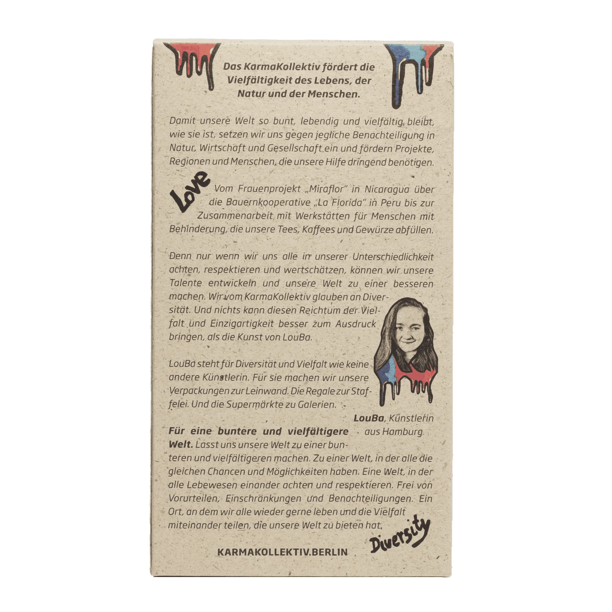 Die KarmaKollektiv GmbH mit Sitz in Berlin steht für fair gehandelte Bio Lebensmittel, ökologische Nachhaltigkeit und gelebte Inklusion. Das Unternehmen arbeitet eng mit landwirtschaftlichen Kooperativen zusammen und verzichtet bewusst auf Zwischenhändler, um faire Preise und hohe Bio Qualität zu ermöglichen.