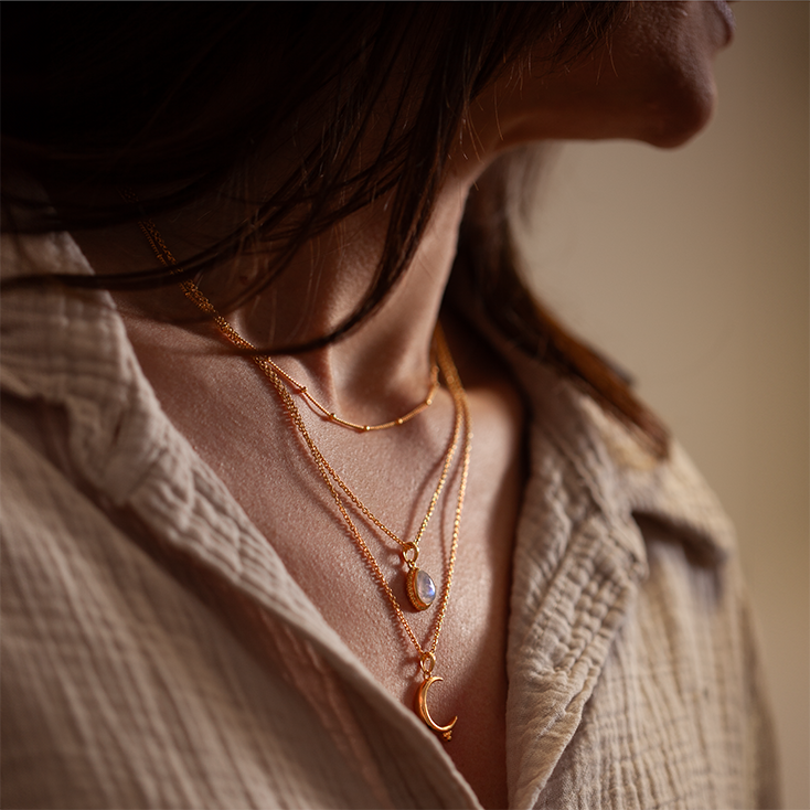 Lúa – sanft, leuchtend, voller Magie. Inspiriert vom geheimnisvollen Schein des Mondes, bringt dieser Anhänger eine stille Eleganz mit sich. Die filigranen Ohrstecker strahlen eine ruhige, fast mystische Schönheit aus – wie das silberne Licht einer klaren Nacht, das dich sanft umhüllt und deine innere Strahlkraft zum Vorschein bringt.