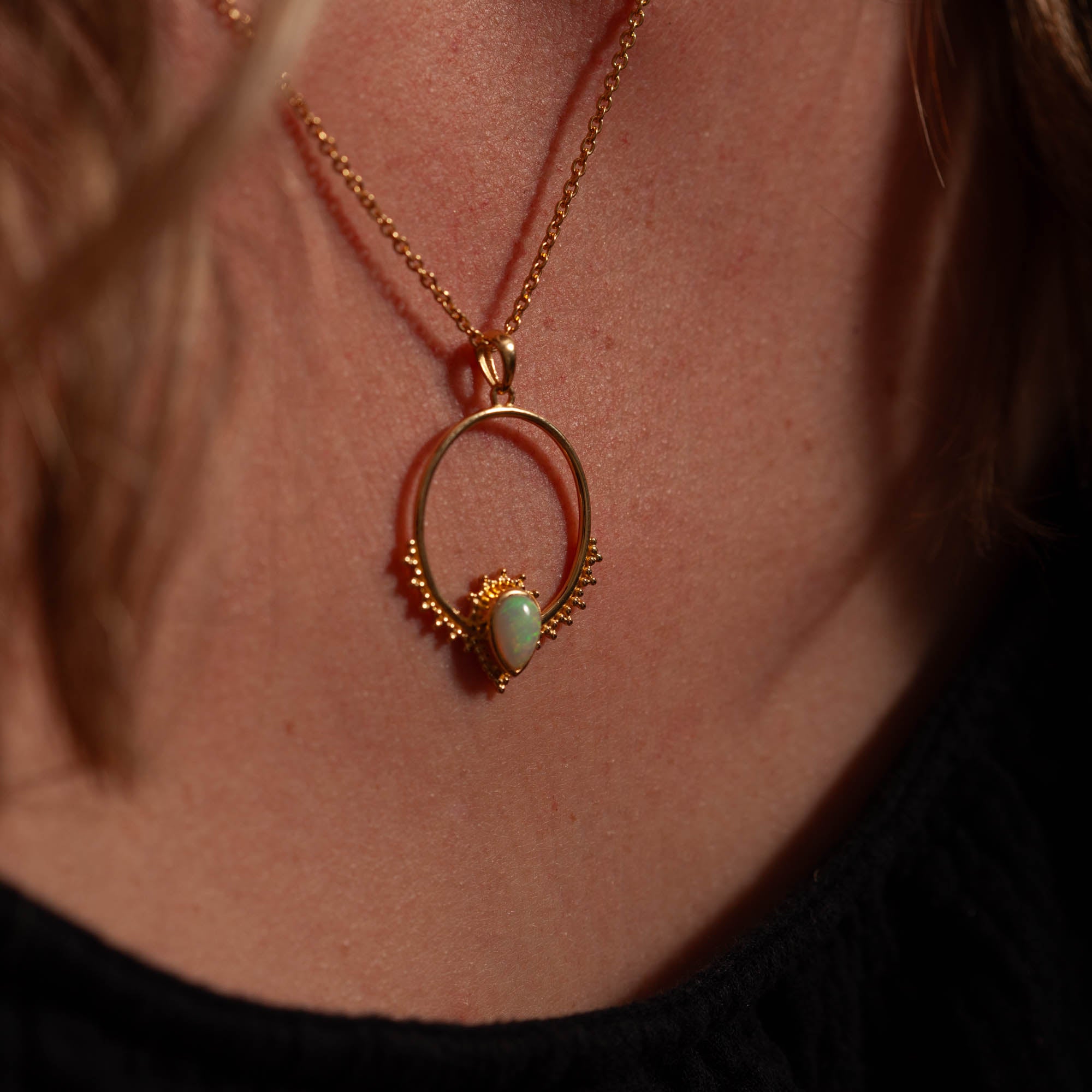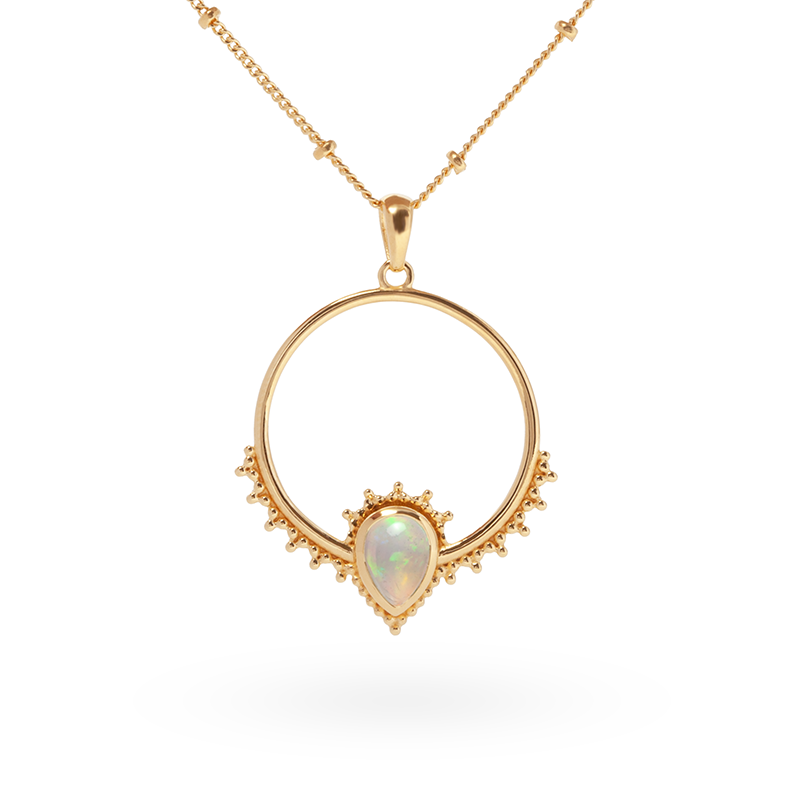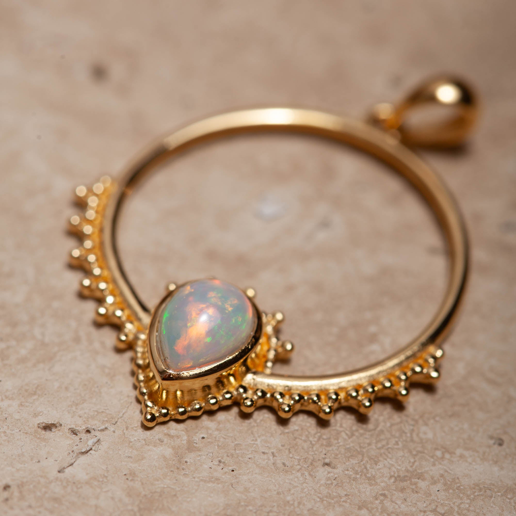 Naïra – strahlend, anmutig, voller Energie. Dieser kunstvolle Anhänger verbindet die natürliche Schönheit eines leuchtenden Steins mit verspielten Details, die an alte Kulturen und zeitlose Eleganz erinnern. Naïra fängt das Funkeln des Lichts ein und verleiht dir eine Aura von Freiheit und Sinnlichkeit – ein Schmuckstück, das Geschichten erzählt und deine Ausstrahlung zum Leuchten bringt.