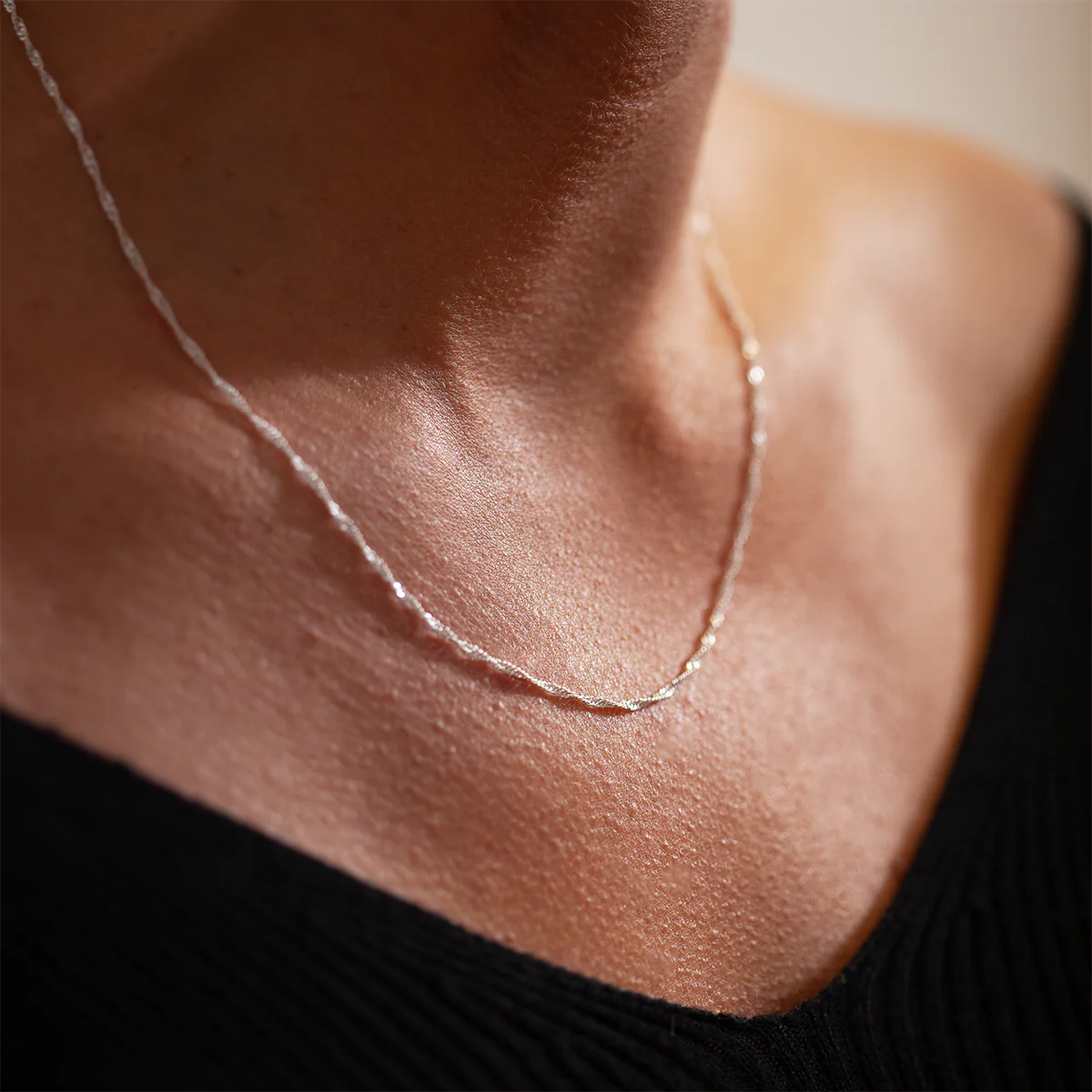 Vínculo (Verbindung) – Diese Kette symbolisiert die tiefe, persönliche Verbindung zwischen der Trägerin und ihrem Schmuckstück. Durch die Kette wird jeder Anhänger zu einem treuen Begleiter, der die individuelle Reise der Trägerin reflektiert und ihre innere Stärke mit jeder Bewegung widerspiegelt.