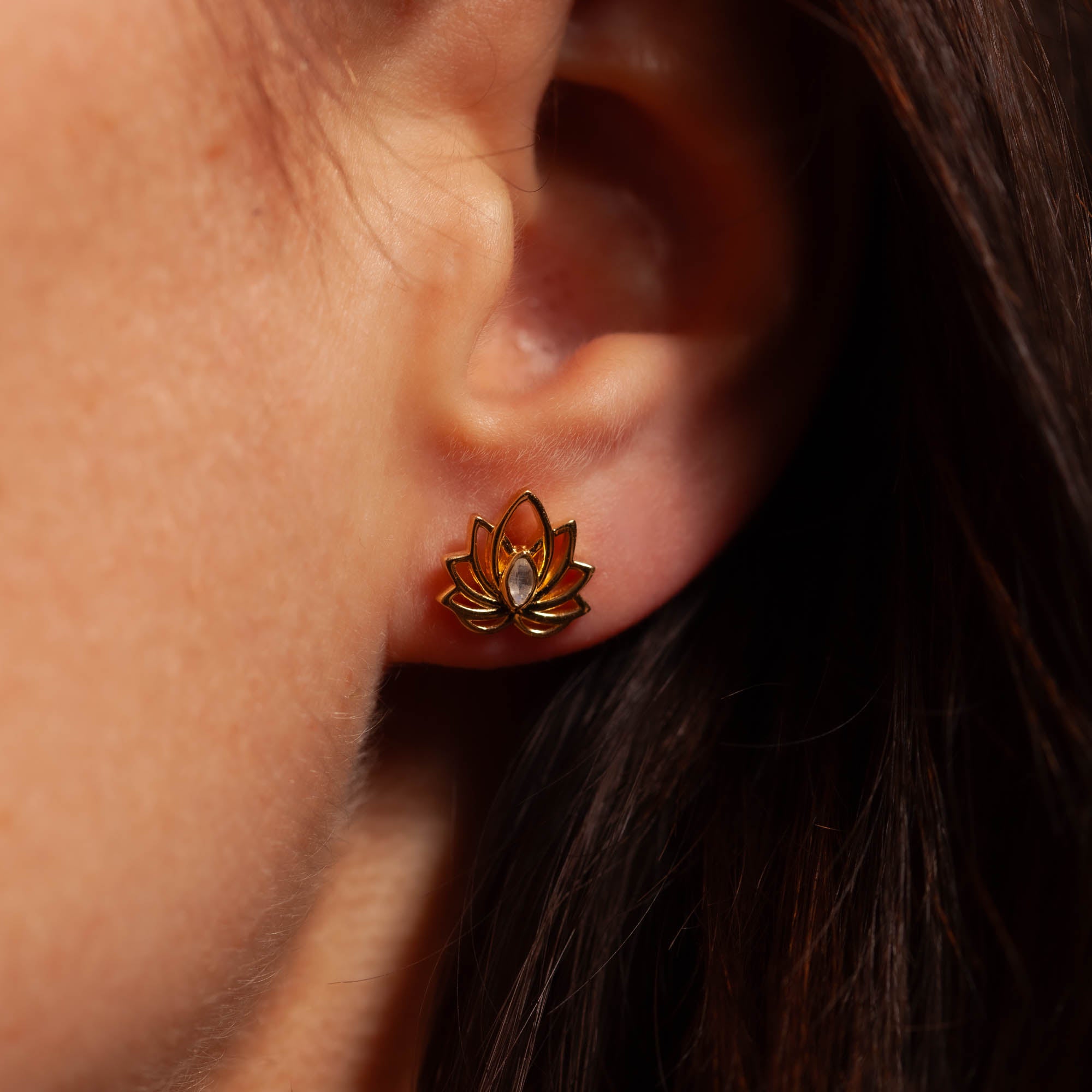 Luméa – sanftes Leuchten, voller Anmut und Magie. Dieser filigrane Lotus-Ohrstecker vereint Reinheit und Neubeginn, wie die Blüte, die sich im Morgengrauen dem Licht öffnet. Mit funkelnden Steinen wie Mondstein und Rosenquarz strahlt Luméa eine leise, aber tiefgehende Energie aus – ein Symbol für innere Schönheit, Wachstum und strahlende Eleganz.