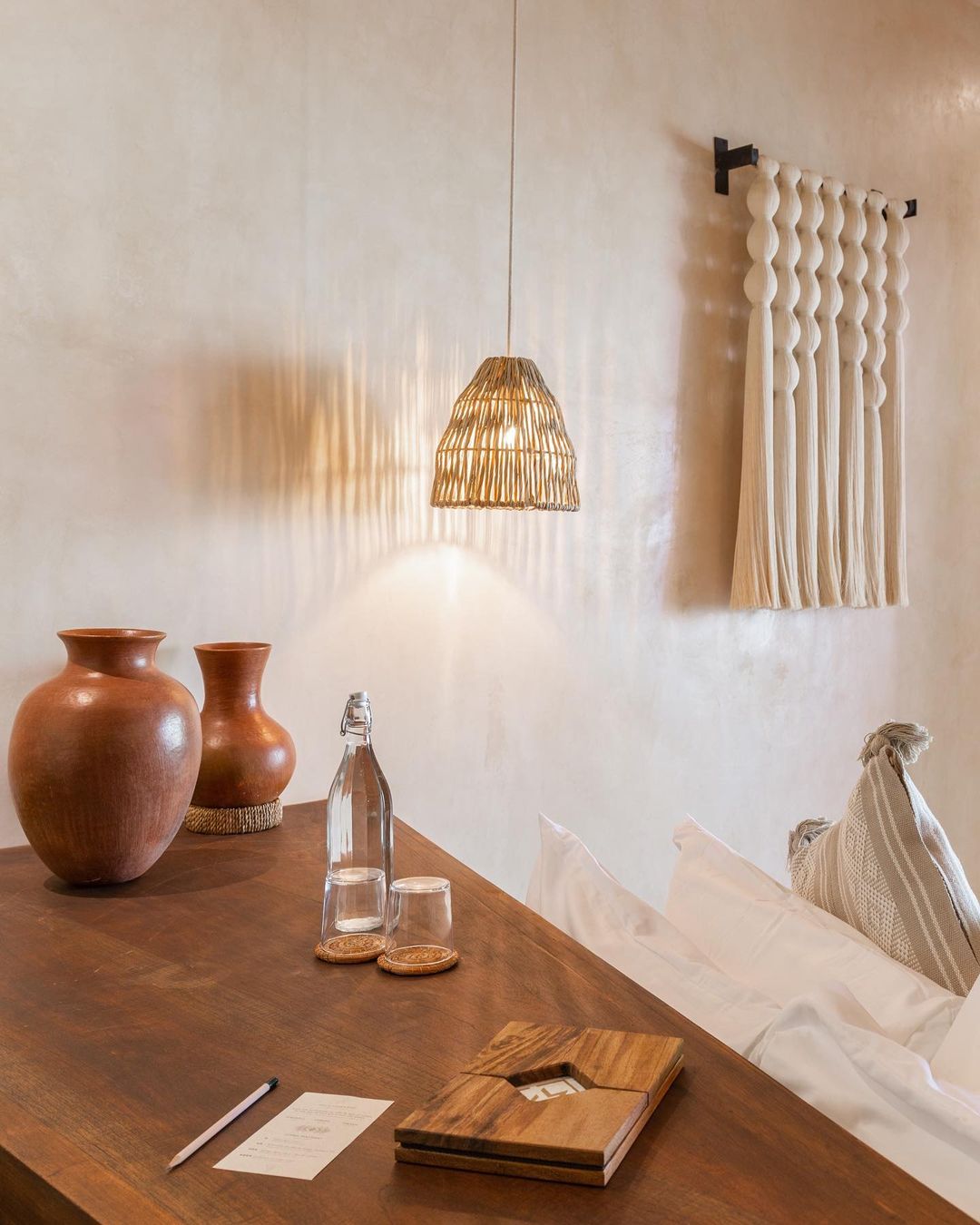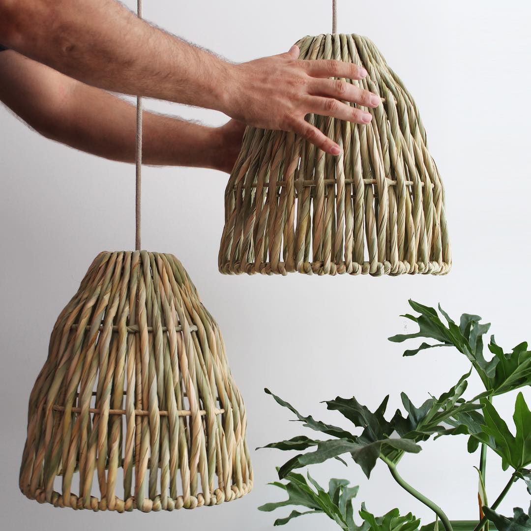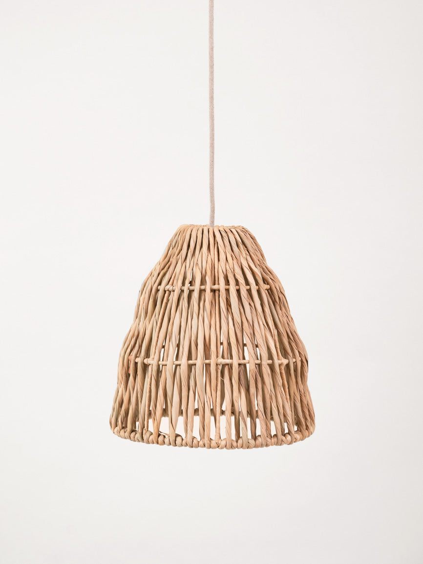 unserer Leuchte Nyima ist das Detail ihres Geflechts: Naturfaser mit gedrehten und verschlungenen Fasern, die bei Beleuchtung ein Spiel aus Licht und Schatten erzeugen.
