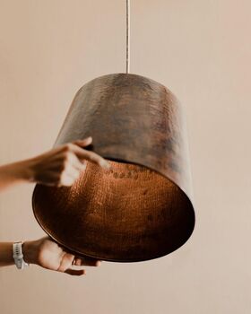 Jeder Hammerschlag ist Teil der Charakteristik dieser Kupferlampe und macht sie zum Unikat. Die jahrhundertealte traditionelle Herstellungsweise verleiht deinem Zuhause das Gewisse etwas und hebt es von der Masse ab.