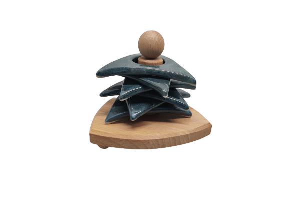 Die dreieckigen Exemplare - 6 Stück auf einem praktischen Holzträger - sind so gearbeitet, dass sie alternativ auch als Serviettenhalter verwendet werden können.