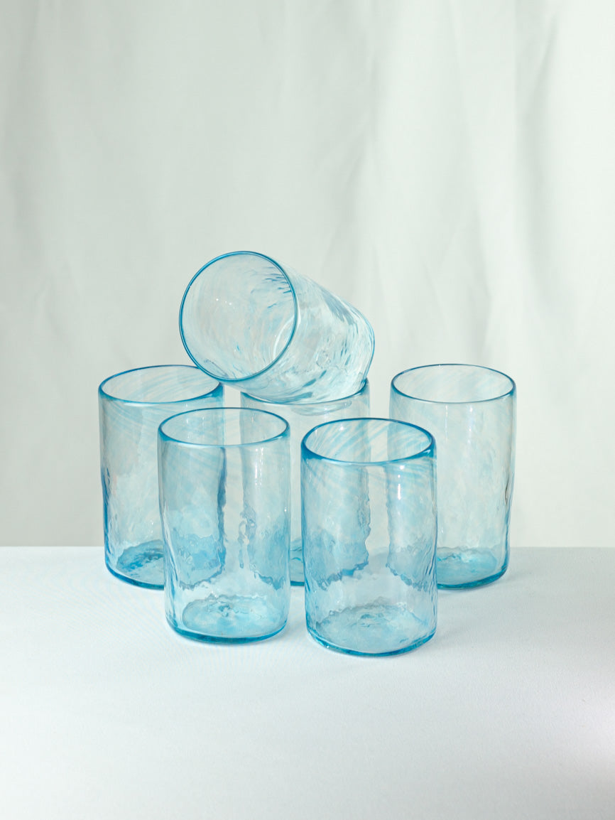Da jedes Glas von Hand hergestellt wird, ist jedes Stück ein Unikat mit individuellen Merkmalen und Charakteristika. Die unregelmäßige Form und die kleinen Luftbläschen im Glas verleihen ihnen eine rustikale und natürliche Ästhetik, die perfekt für eine gemütliche und entspannte Atmosphäre geeignet ist.