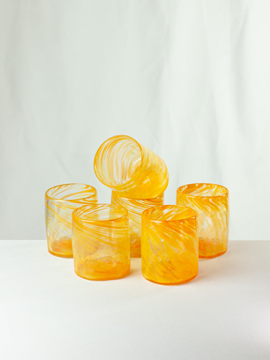 Die mundgeblasenen Gläser und Karaffen aus Lateinamerika werden aus recycletem Glas hergestellt und erhitzt durch wiederverwendetes Speiseöl aus der Gastronomie. Durch dieses Verfahren ist jedes einzelne Glas ein echtes Unikat und unsere endlichen Ressourcen werden bestmöglich genutzt.