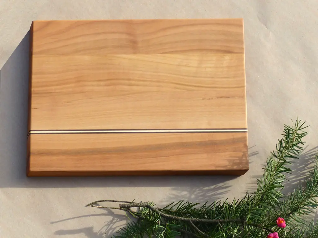 Handgefertigt aus der Holzschreinerei Hohenroth stammt dieses Brett aus robustem Holz - perfekt für deine Brotzeit. Aus nachwachsenden Materialien bestehend (zur Wahl steht dir helles Kirschholz oder warmes Nussbaumholz ) ist dieses Schneidebrett nicht nur nachhaltig, sondern durch seine natürlich antimikrobielle Eigenschaft auch hygienischer. Gleichzeitig schont es auch deine Messer. Optisch gesehen macht das Holz aus Kirsch als auch aus Nussbaum ganz schön was her, denn es bringt eine warme und ansprechende Ästhetik in deine Küche. So ist es nicht nur dein perfektes Küchenutensil, sondern eignet sich ebenso ideal zur ansprechenden Präsentation deines Brots & Aufschnitts.